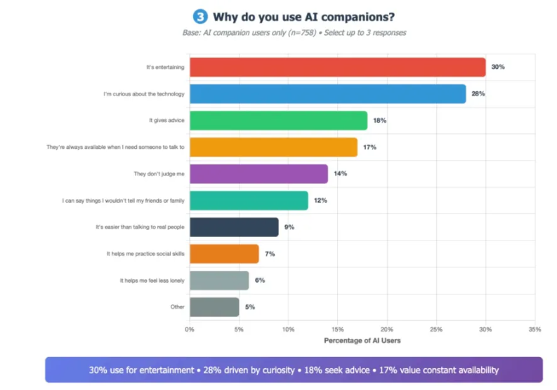 - 33% found conversations with AI more satisfying than with real friends
