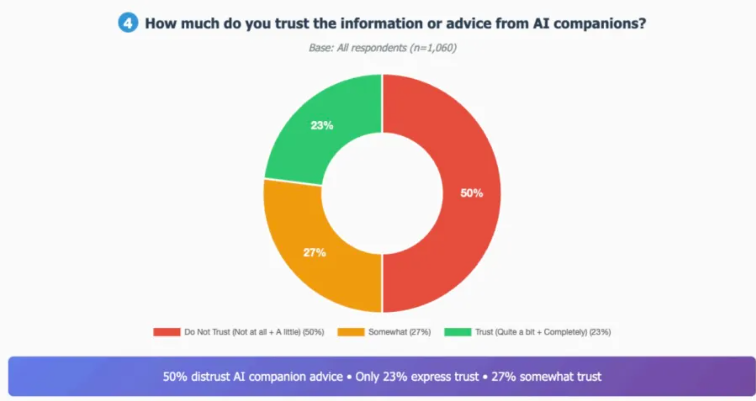 - Trust gap: Half distrust AI information despite regular use