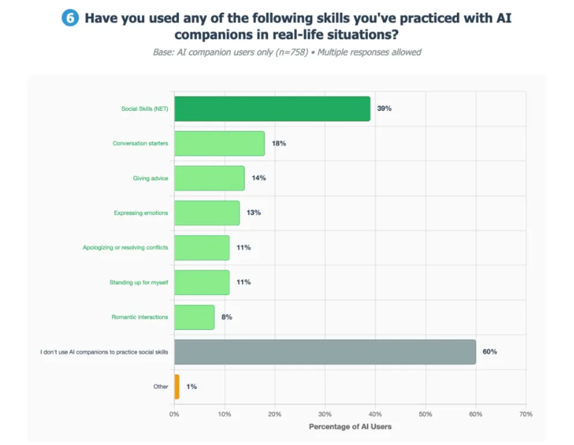 - 39% used chatbots to practice real-life interactions