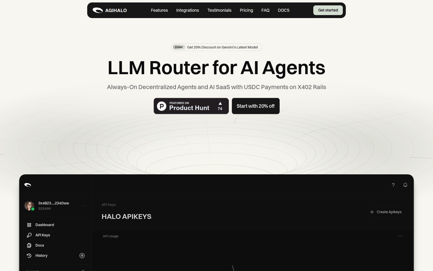 Picture this: Your AI agents never sleep, manage their own budgets, and automatically switch between language models for optimal performance. That's not sci-fi—it's what Agihalo delivers today. Built for developers tired of babysitting their AI infrastructure, this router combines smart LLM selection with blockchain-powered autonomy.