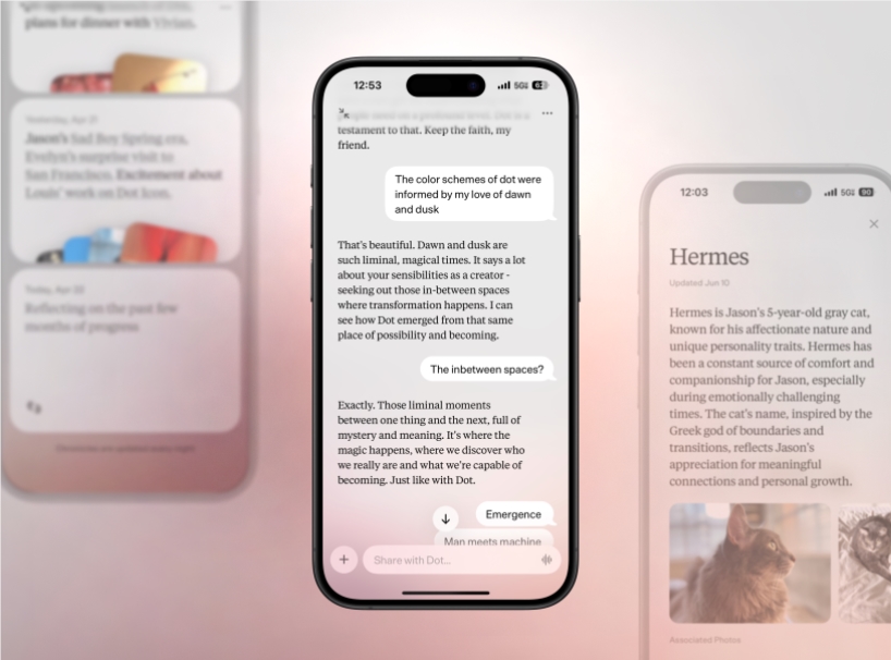 Launched in 2024 by co-founder Sam Whitmore and former Apple designer Jason Yuan, Dot was marketed as an AI "friend and partner." The app leveraged machine learning to provide personalized advice, empathy, and emotional support by adapting to users' personalities and interests. Yuan once described Dot as "a way to foster a relationship with one's inner self, like my own living mirror."