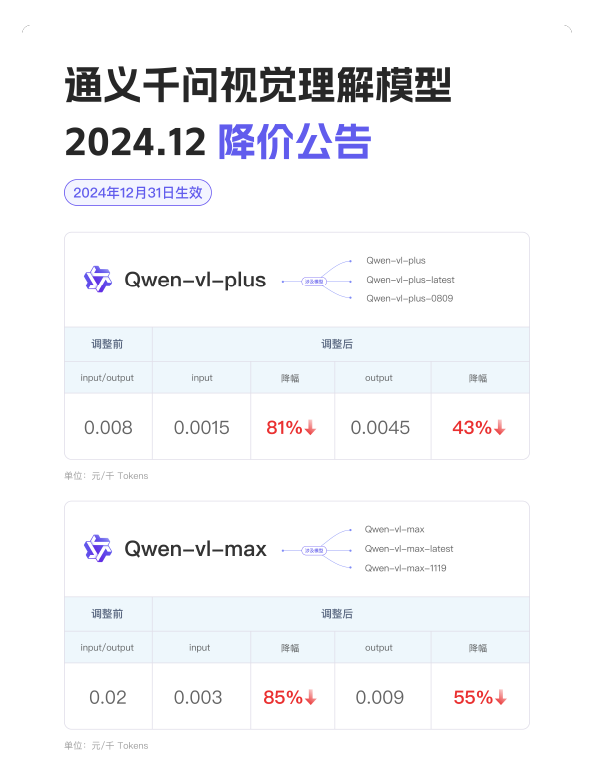 - Alibaba Cloud has reduced prices for its Qwen-VL series models by over 80%.