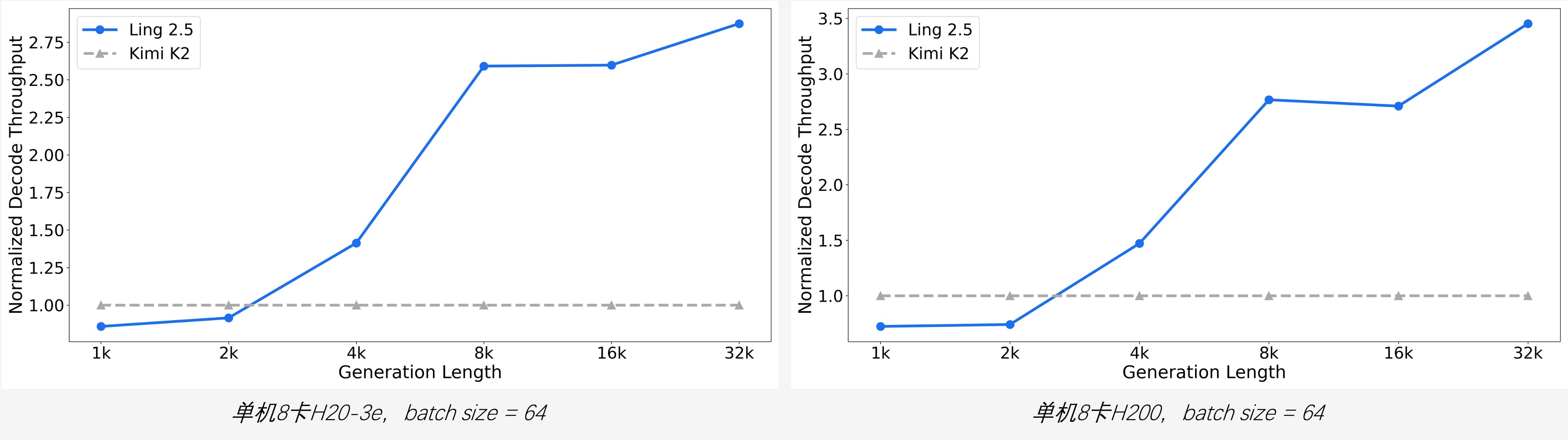 (Figure caption: Efficiency comparison under different generation lengths. The longer the generation length, the more obvious the throughput advantage.)