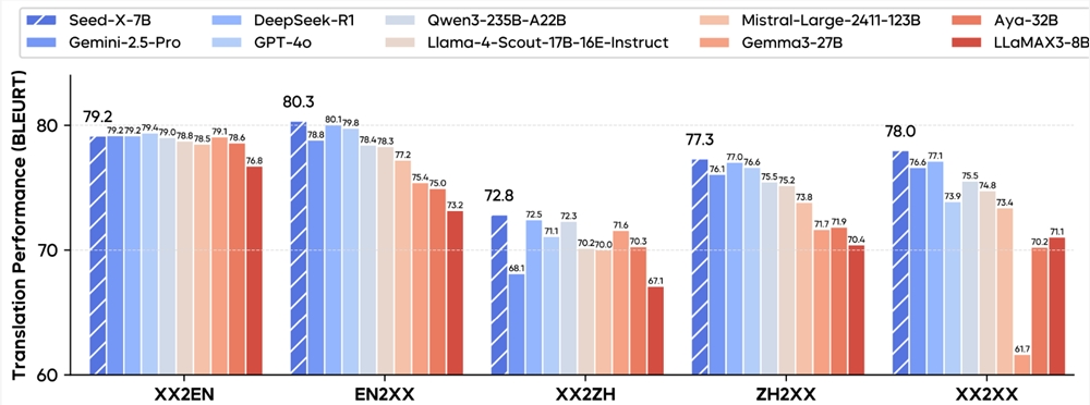 ByteDance's Seed team has officially open-sourced Seed-X, a compact yet powerful multilingual translation model with just 7 billion parameters (7B). The model supports bidirectional translation across 28 languages, including English, Chinese, Japanese, Korean, and major European languages, demonstrating performance comparable to industry-leading large models.