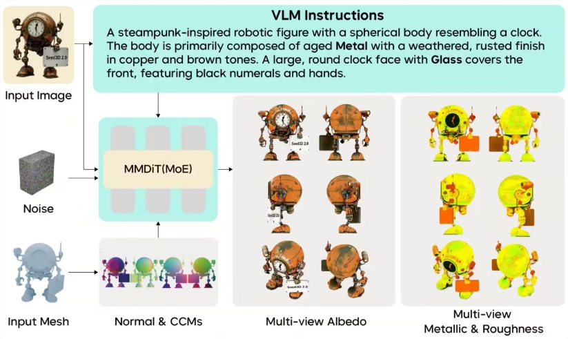 The secret sauce lies in Seed3D2.0's two-phase approach. First, it establishes the overall shape before refining intricate details—a method that proves particularly effective for challenging elements like sharp edges or delicate structures. The model also introduces smart lighting interpretation technology (VLM prior), allowing it to better understand and recreate how materials interact with light sources.
