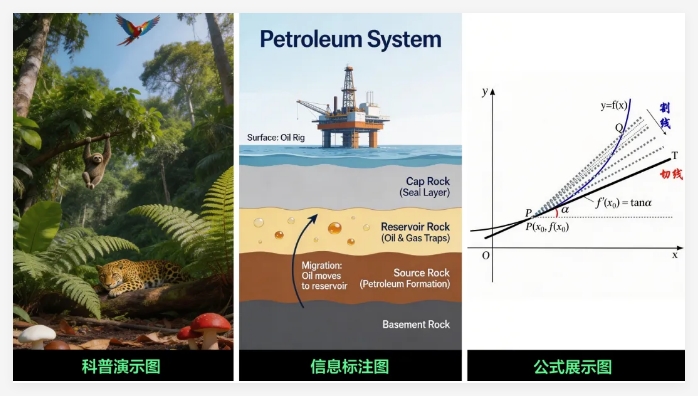 What makes this model different? It doesn't just process pixels - it comprehends concepts. Need an illustration showing rainforest layers? The AI understands the ecological relationships between them. Creating a geological diagram? It knows where oil deposits typically form.