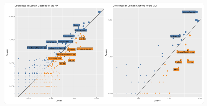 - Access method matters: Web interface leans mainstream/conservative; API prefers encyclopedic/niche sources