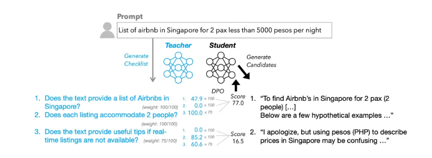 - A powerful "teacher model" generates task-specific checklists with yes/no requirements