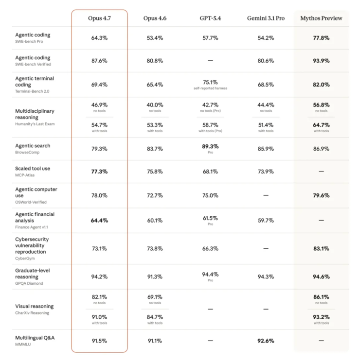 Don't mistake reliability for weakness. Claude 4.7 shows serious gains across key benchmarks: