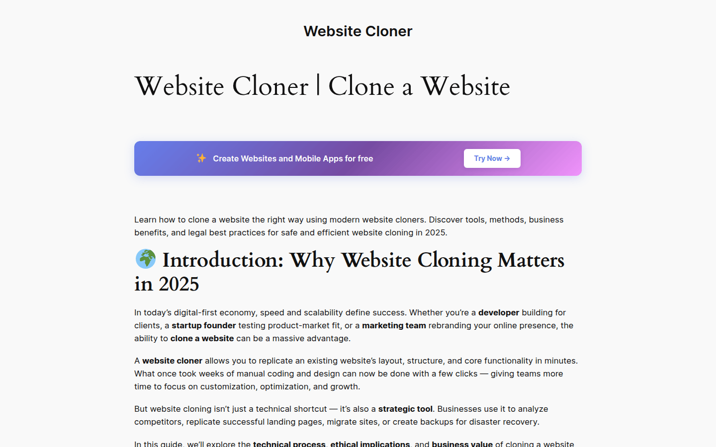 Ever wished you could duplicate a website as easily as copying a document? Website Cloner makes that possible.