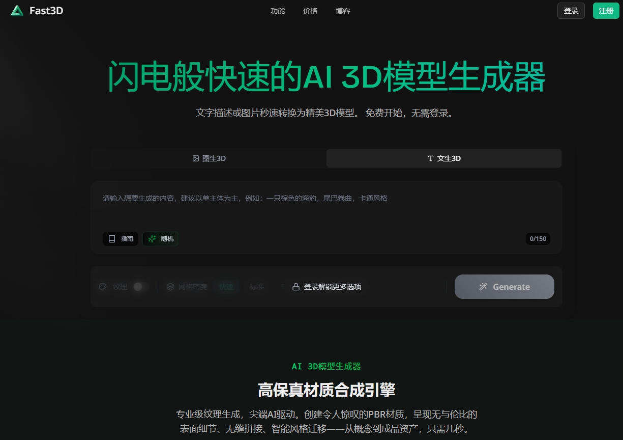 Fast3D is a cutting-edge AI-powered tool designed to create high-quality 3D models quickly and efficiently. It caters to a wide range of users, from individual creators to professional teams, by offering fast generation times and professional-grade outputs. Whether you're working on game design, product prototyping, or educational projects, Fast3D provides the tools you need to bring your ideas to life.