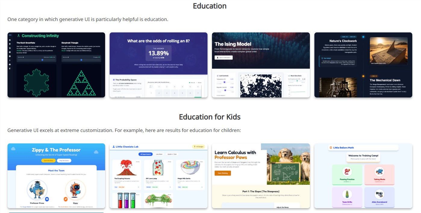 Traditional AI assistants communicate through scrolling text - helpful, but limited. Generative UI shatters this constraint by enabling artificial intelligence to design complete visual interfaces spontaneously. When you pose a question about molecular biology or financial concepts, the system doesn't just explain - it builds.
