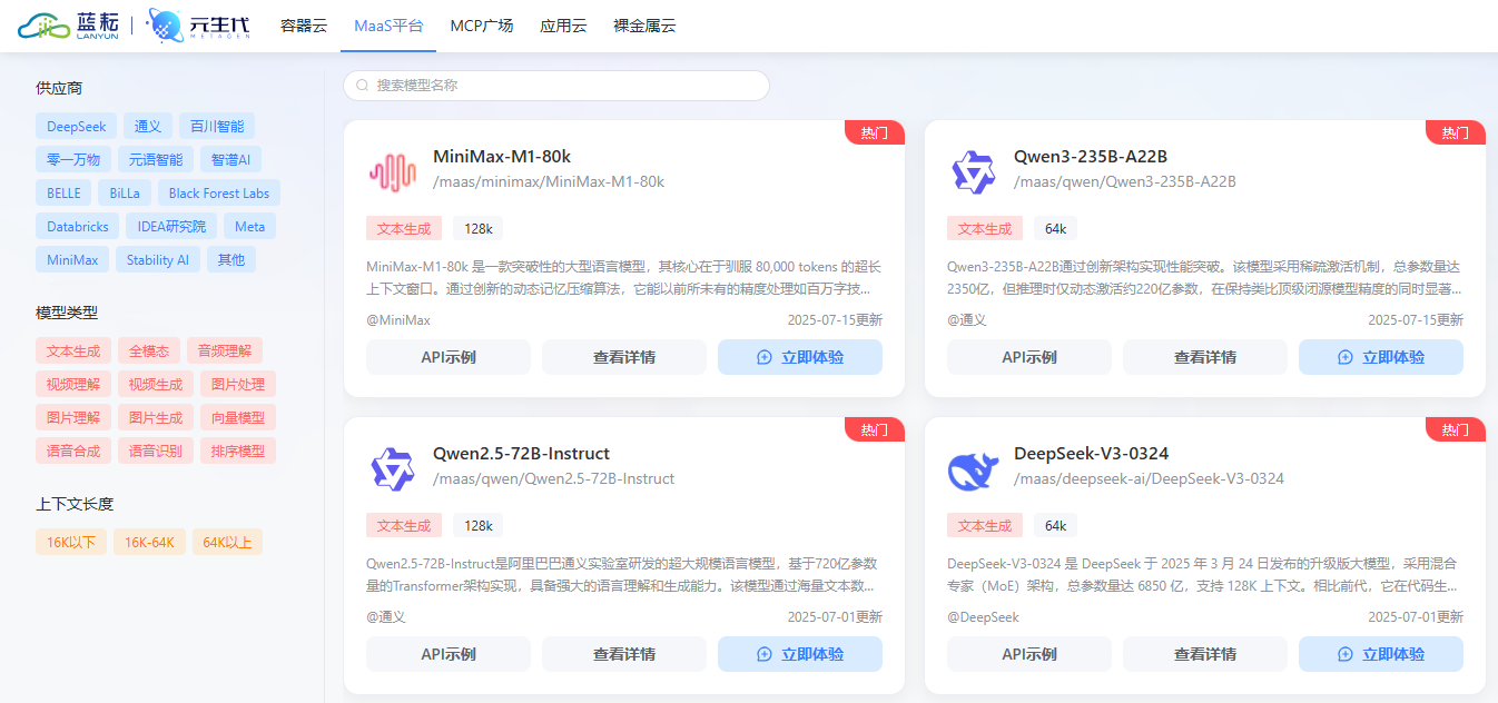 蓝耘元生代MaaS GPU算力云服务