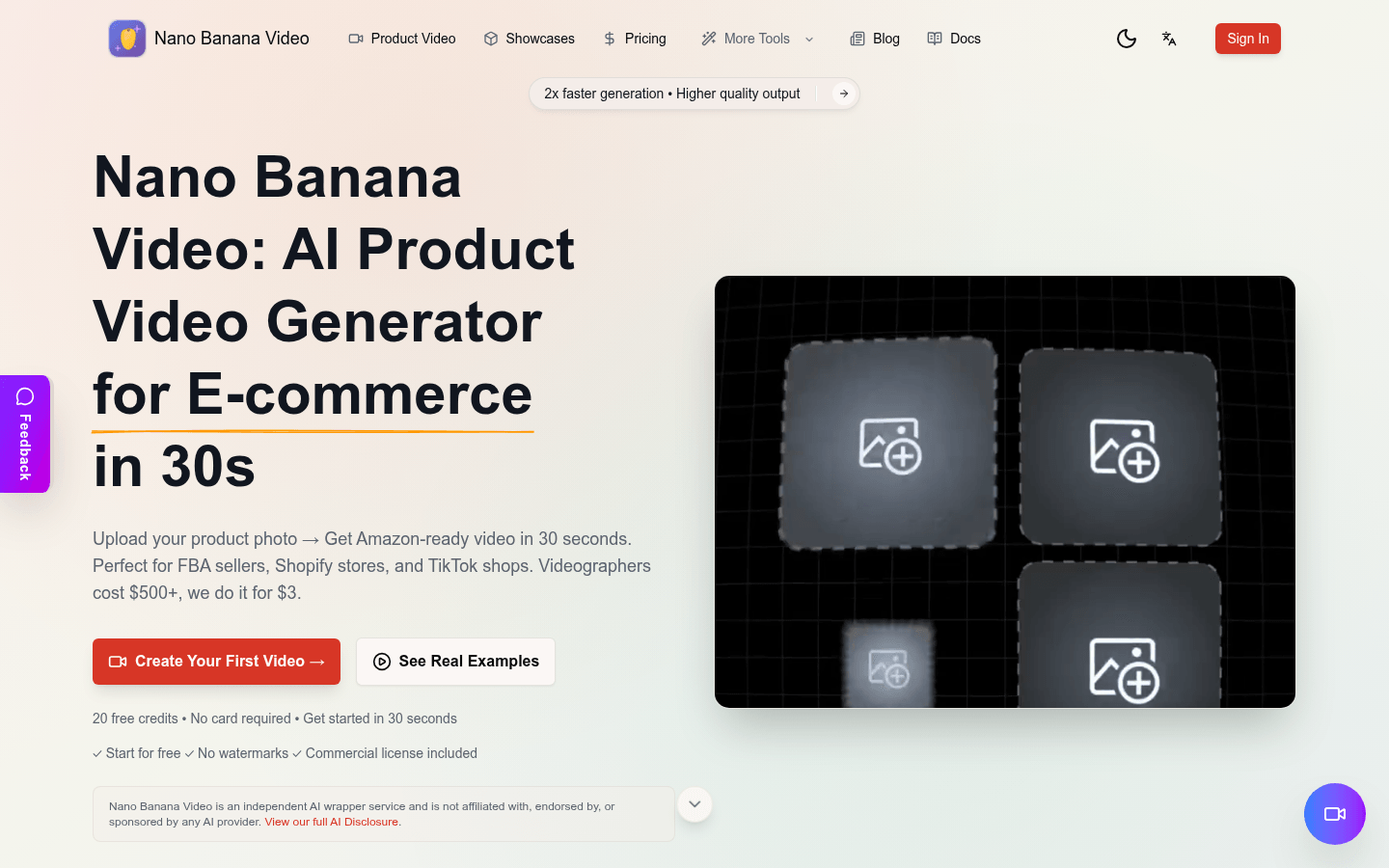 Ever struggled with creating engaging product videos? Meet Nano Banana Video – an independent AI service that transforms how online sellers showcase their products. Unlike generic video tools, it's laser-focused on e-commerce needs.