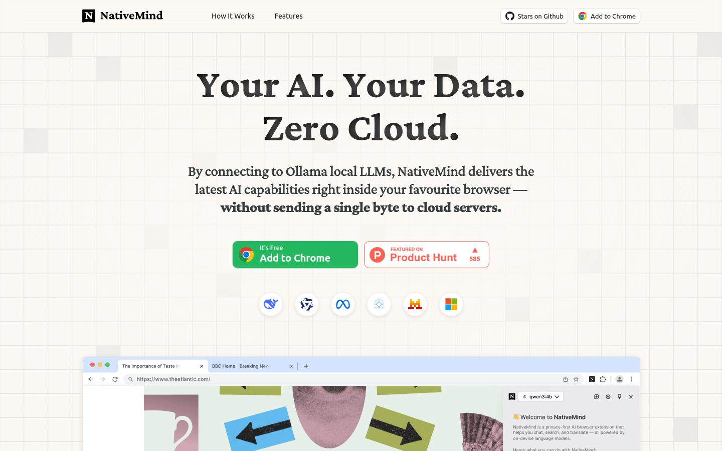 NativeMind is a cutting-edge AI assistant designed to operate entirely on your local device, ensuring maximum privacy and data control. By leveraging Ollama's local LLMs, it delivers powerful AI functionalities directly within your browser without any data transmission to external servers. This open-source solution is perfect for users who prioritize data security while seeking efficient AI support for various tasks.