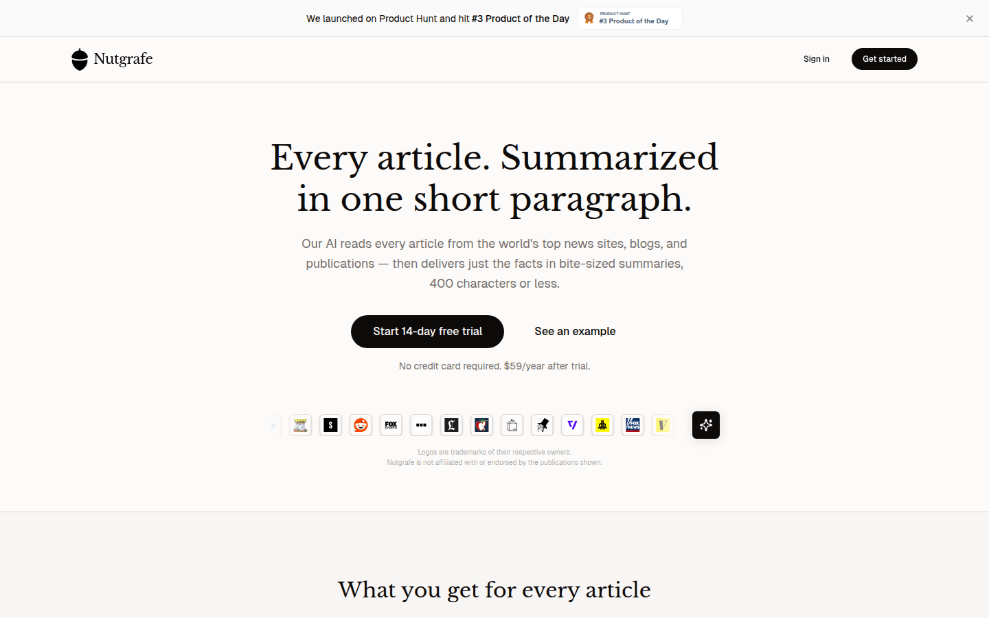 In today's information tsunami, Nutgrafe throws you a lifeline. Imagine getting the gist of any news story in about 30 seconds - that's what this AI-powered summarizer delivers.