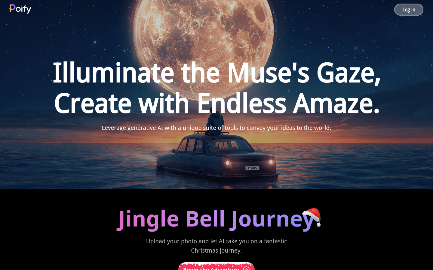 Poify is a website designed to unlock infinite possibilities using generative AI, allowing users to express their creativity in unique ways. By uploading photos, users can co-create imaginative scenes and embark on whimsical adventures, such as dancing with polar bears or becoming their own Santa Claus. This platform merges creativity with advanced technology, making it an exciting tool for anyone looking to showcase their innovative ideas.