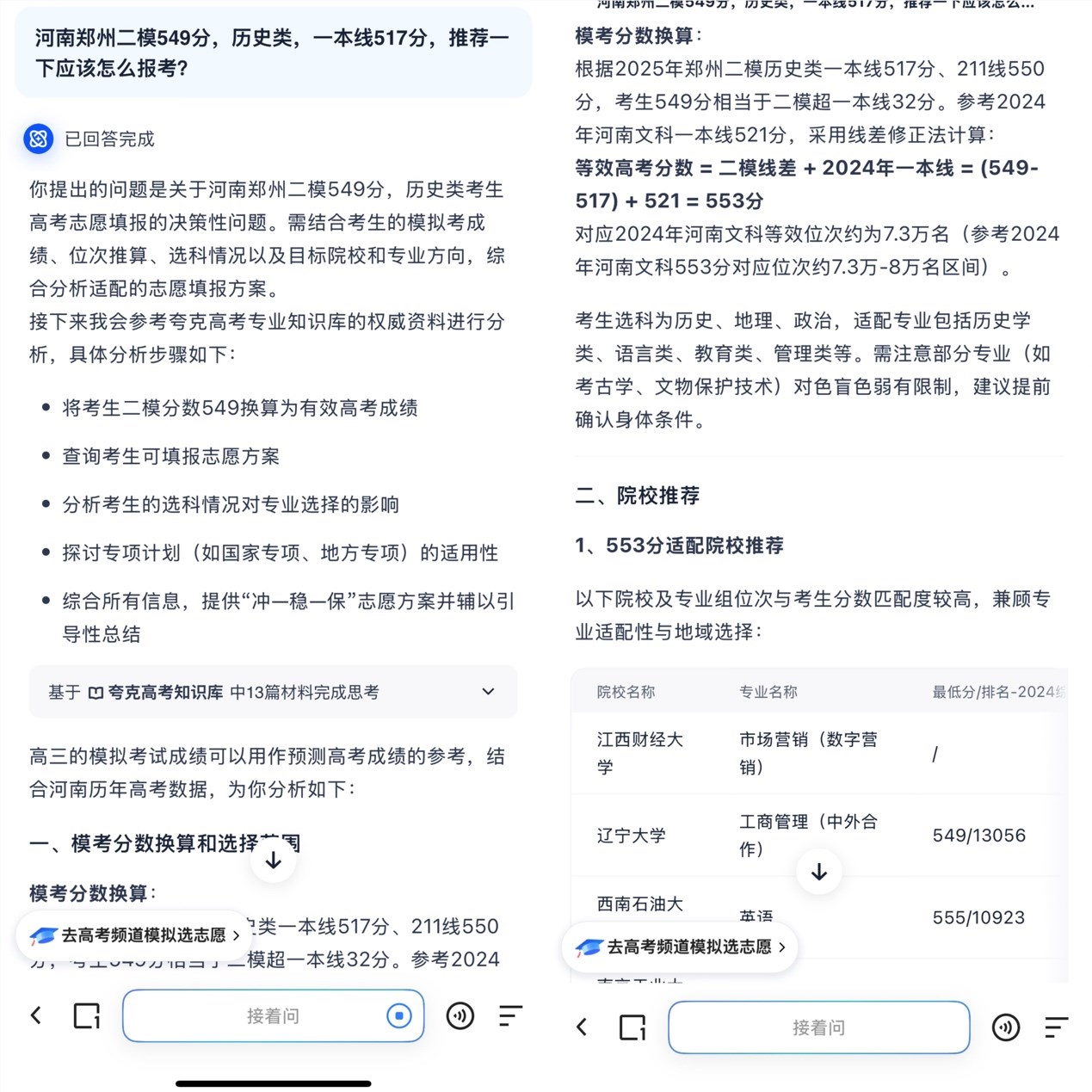 - Quark's deep search provides personalized Gaokao application strategies through AI analysis