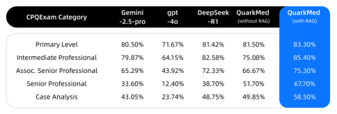 - Demonstrated increasing advantage with question difficulty on China's Physician Qualification Exam (CPQExam)