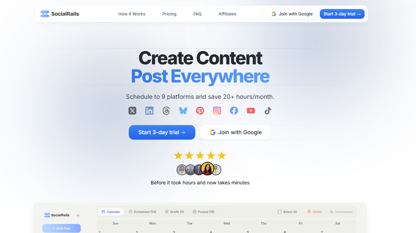 SocialRails is a powerful social media management tool designed to simplify content scheduling and publishing across multiple platforms. It caters to individual creators, entrepreneurs, and small businesses by offering a unified solution for managing social media presence. With its intuitive interface and advanced features, SocialRails helps users save time while maximizing engagement.