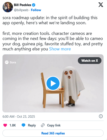 The most notable update is the full release of "Cameo" functionality, which now extends beyond human subjects. Previously limited to creating digital avatars from user selfies, Sora will soon allow pets, stuffed animals, and nearly any object to star in AI-generated videos.