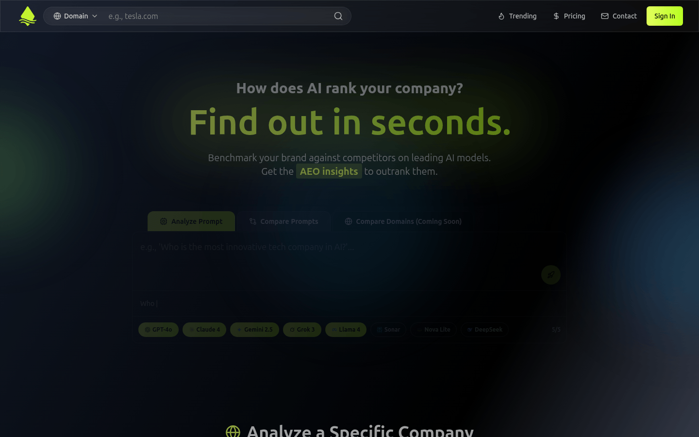 - Industry-Specific Rankings: Understand how AI models rank companies within specific industries.