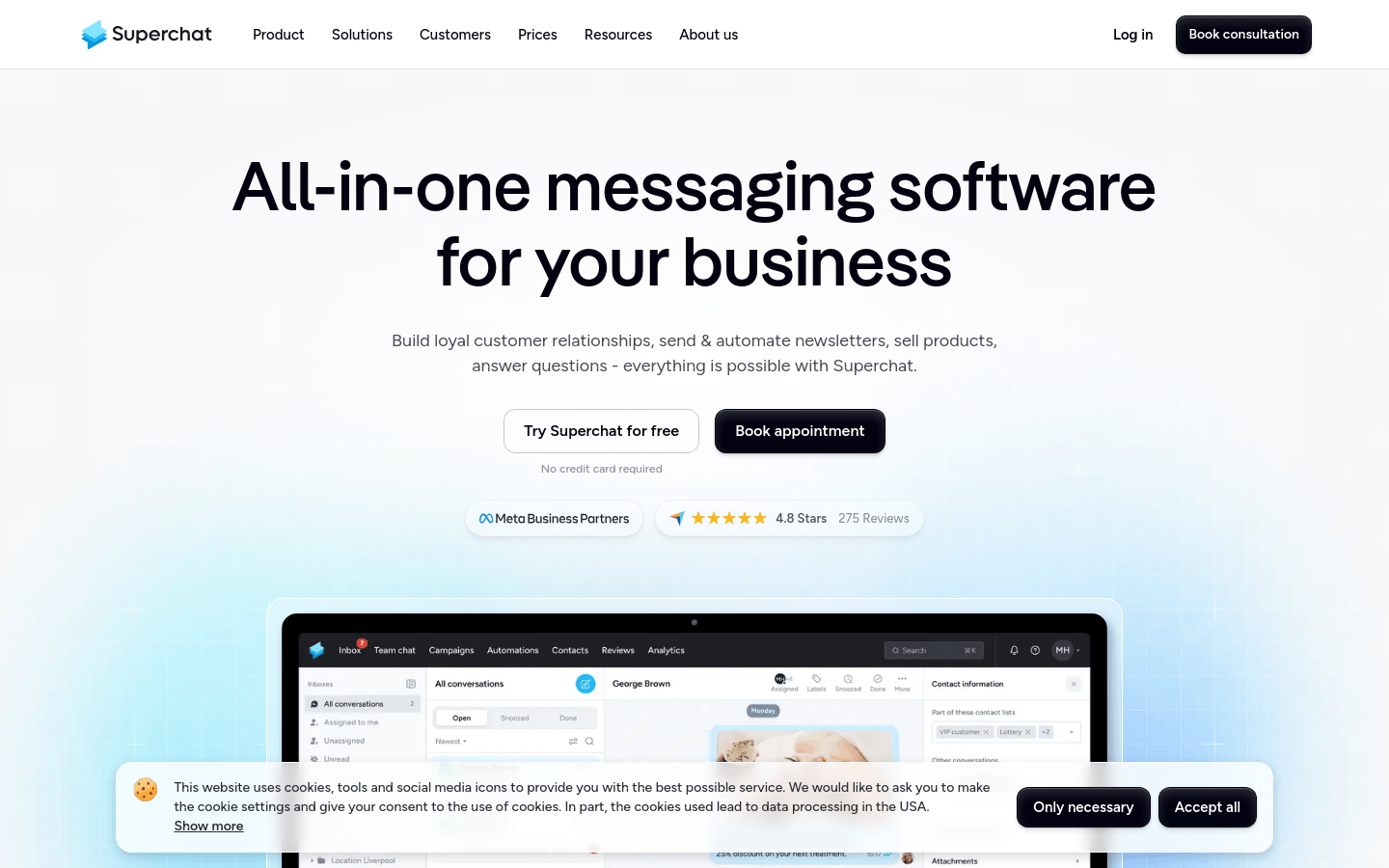 Superchat.com is an enterprise-level omnichannel messaging solution designed for businesses to improve customer interaction via various instant messaging tools, including WhatsApp. It centralizes message management, automates processes, and integrates with third-party services, enhancing communication efficiency and sales performance. This platform is crucial for businesses looking to streamline their customer support, sales, marketing, and recruitment processes.