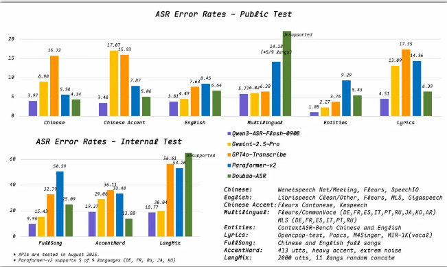 Qwen3-ASR-Flash stands out with its extensive language capabilities: