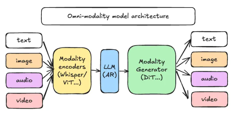 - Modal Generators utilize diffusion models (including DiT and Stable Diffusion) to produce final outputs