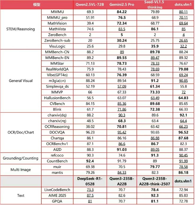 In rigorous testing across international evaluation sets, dots.vlm1 shows remarkable results: