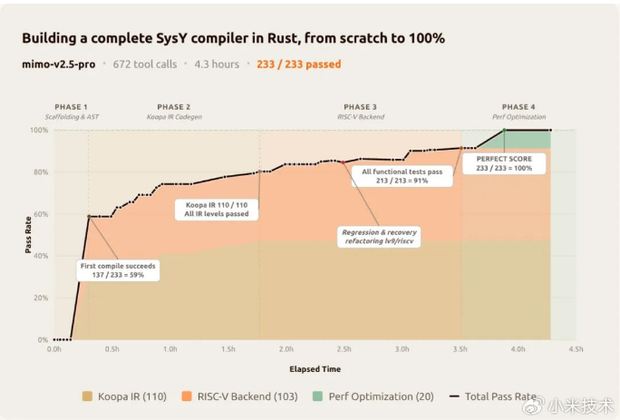 "The Pro model completed our SysY compiler challenge with perfect scores," revealed Xiaomi's engineering team. "What took human developers weeks, it accomplished in 4.3 hours with 672 tool calls."