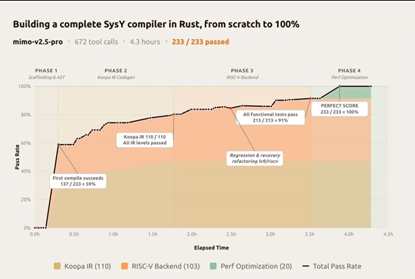 Xiaomi put its creation to the test with a real-world challenge: developing a compiler for Peking University's "Principles of Compilation" course. What typically takes undergraduate students weeks to complete, the Pro model nailed in just over four hours, making 672 tool calls along the way and earning top marks. This kind of performance puts it in direct competition with premium closed-source alternatives like Claude Opus and GPT models.