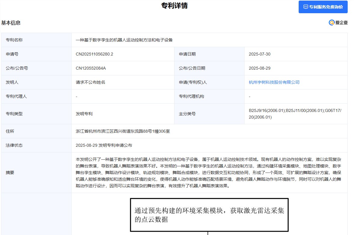 Hangzhou Unitree Technology Co., Ltd. (operating as Yushu Technology) has received patent approval for its groundbreaking "Robot Motion Control Method and Electronic Device Based on Digital Twin", marking a significant advancement in robotic stage performance technology.