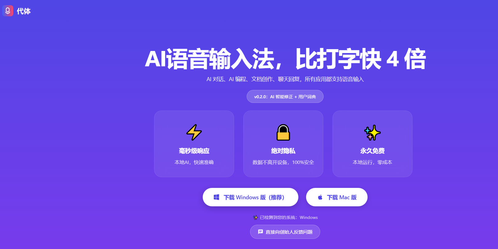 - 毫秒级响应: 使用本地 AI 技术确保输入速度快且准确。