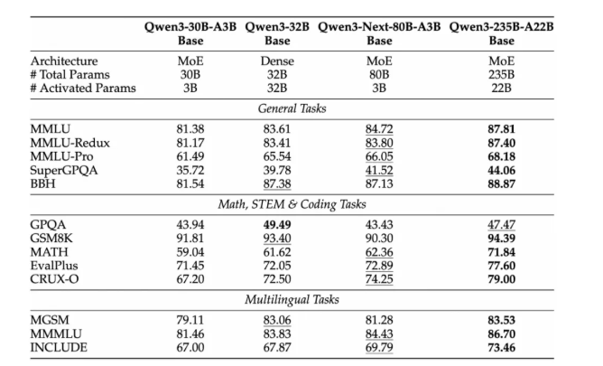 新模型拥有800亿总参数,但在推理时仅激活30亿参数,与上一代Qwen3-32B相比,训练成本降低了90%。更令人印象深刻的是,它在处理超过32K tokens的超长文本时,实现了10倍的推理效率提升。
