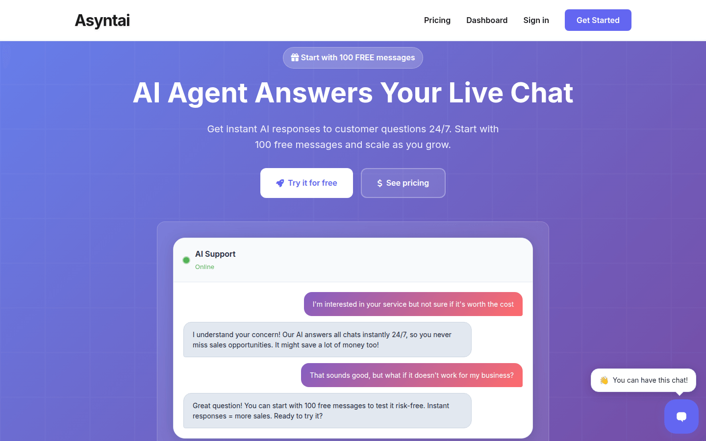 Asyntai - 人工智能驱动的在线聊天支持