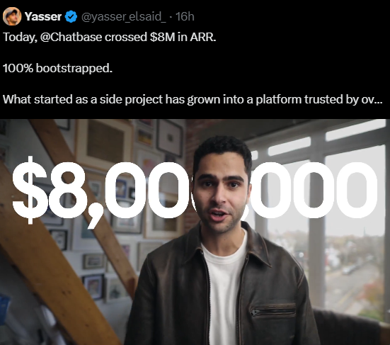 Yasser Elsaid与Chatbase的历程堪称每位自力更生创业者的梦想。2021年作为业余项目起步的简单工具——将PDF转换为AI聊天机器人——如今每30分钟就能从全球10,000多家企业客户身上创造15,000美元的收入。这一切都未接受过一分钱风险投资。