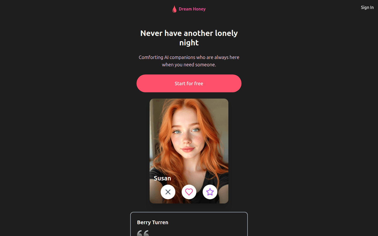 - 持续陪伴:DreamHoney的AI始终在线,确保用户永远不会感到孤单。