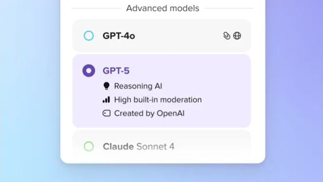 - 付费套餐(9.99美元/月):解锁高级模型,包括GPT-4o、GPT-5(有限访问)、Anthropic的Claude Sonnet 4和Meta的Llama Maverick
