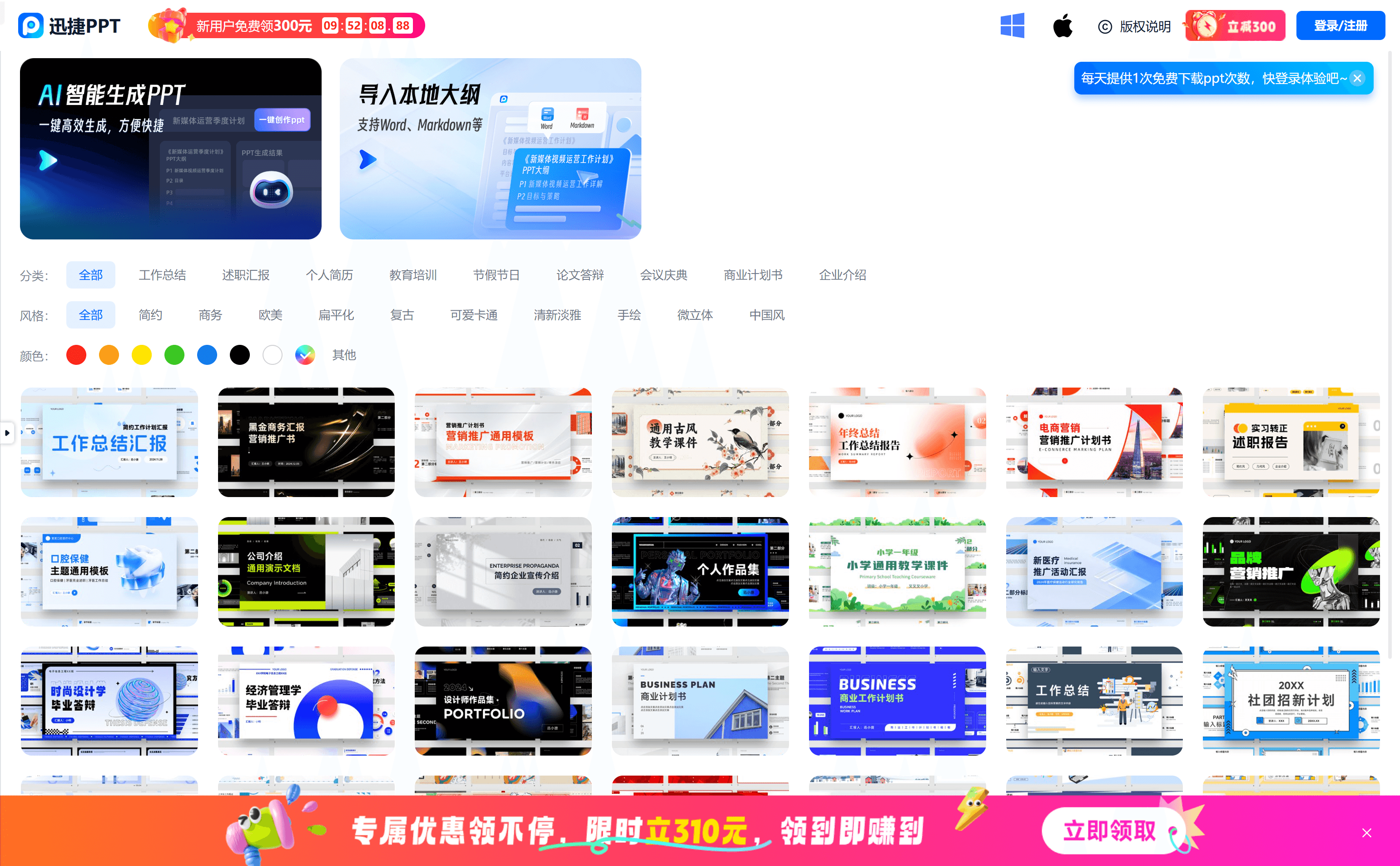 - 丰富的 PPT 模板选择:提供多种时尚模板,以满足各种场景需求。
