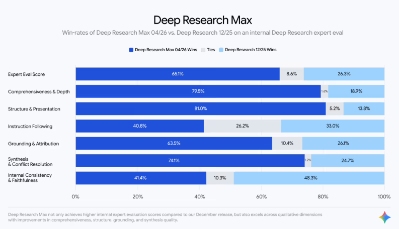 - Deep Research Max 采用持久战策略,像资深研究员通宵工作般,利用额外算力系统性地完善分析