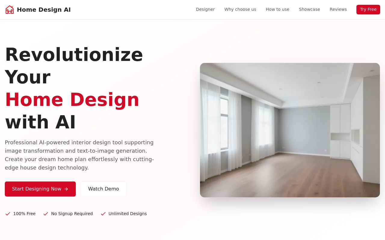 - 图像转换:上传您的空间照片,AI将重新设计它。