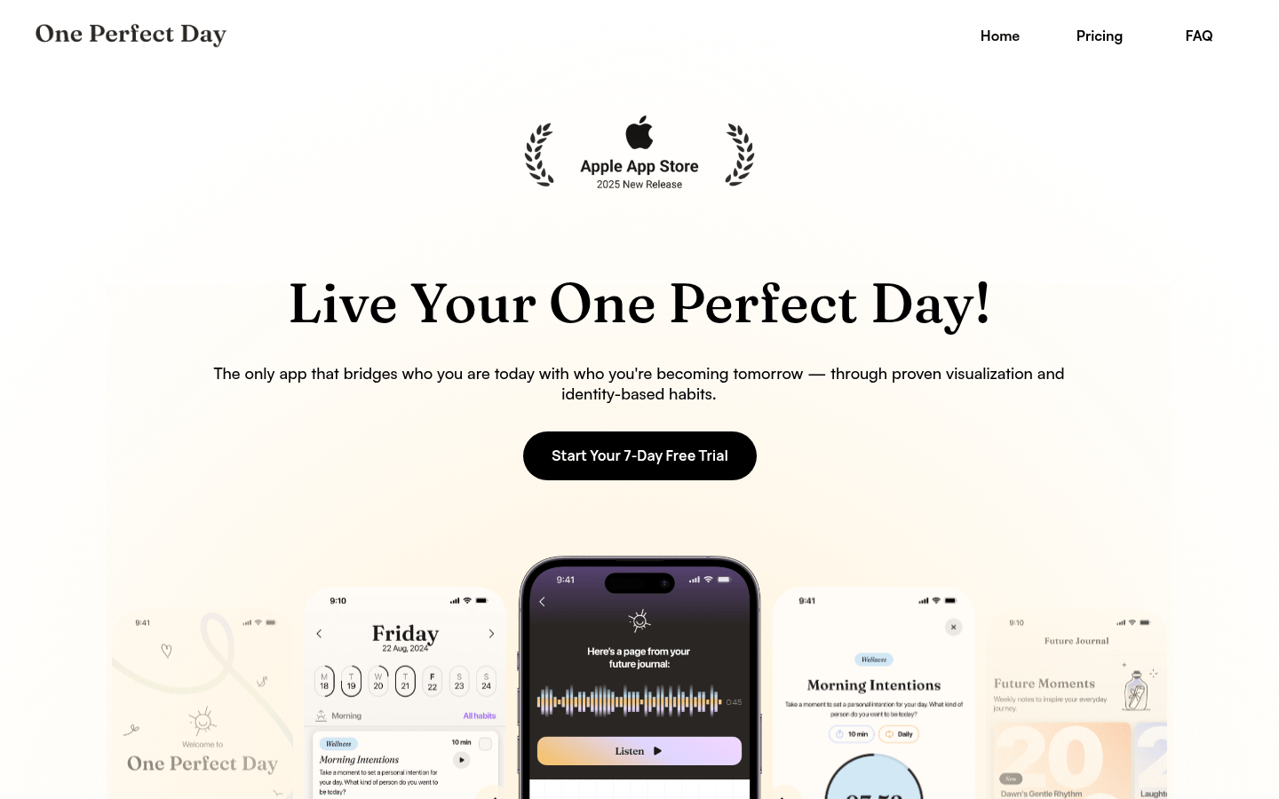 《完美一日》官方网站可访问 https://oneperfectday.app/,用户可注册并开始通往完美之日的旅程。