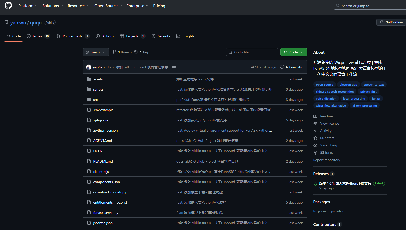 QuQu(蛐蛐)是一款开源免费的桌面应用程序,专为需要高效语音输入和文本处理的中文用户打造。与Wispr Flow等订阅制方案不同,QuQu通过本地化数据处理强调隐私保护。它采用阿里巴巴的FunASR Paraformer模型,提供高准确率的中文语音识别能力。该工具支持macOS、Windows和Linux多平台。