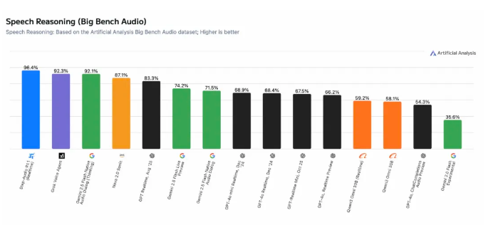 在开源 AI 领域的一项显著成就中,StepZen Star 公司的 Step-Audio-R1.1 语音推理模型在 Artificial Analysis Speech Reasoning 的全球评估排名中拔得头筹。该模型以前所未有的 96.4% 准确率击败了包括 Elon Musk 的 Grok、Google 的 Gemini 和 OpenAI 的 GPT-Realtime在内的闭源竞争对手。