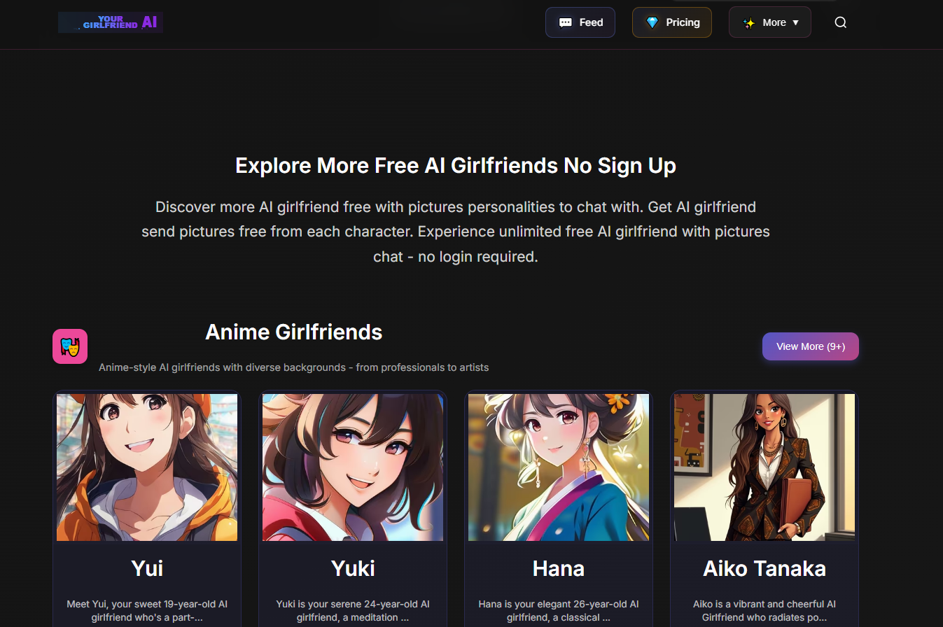 - 多角色选择:从多样化的AI女友中选择,如友善的Yui、冥想的Yuki或音乐爱好者Hana。