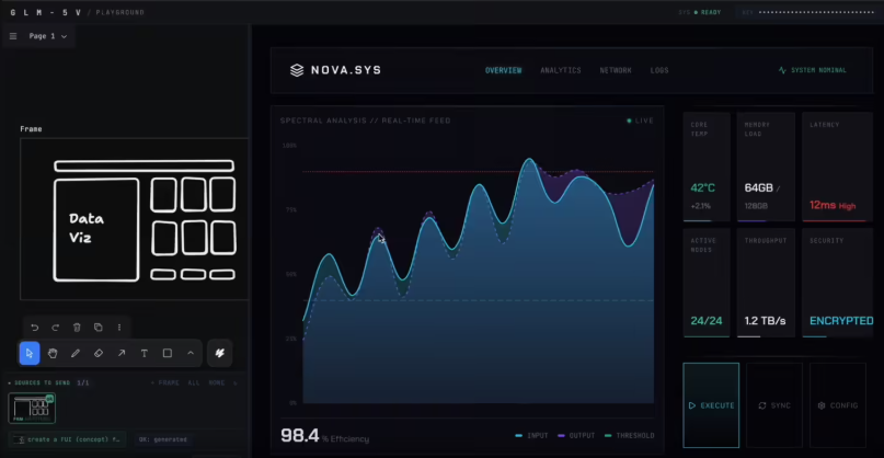传统编程助手依赖文本提示——你描述需求,它们生成代码。GLM-5V-Turbo通过处理真实图像改变了游戏规则:上传线框图或截图,它就能输出与视觉设计匹配的整洁、可用的前端代码。